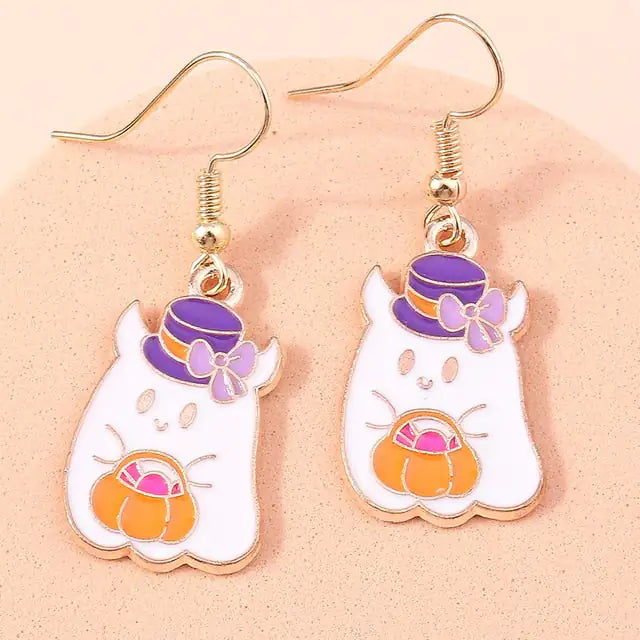 Enhance your Halloween costume with our trendy Halloween-themed drop earrings! From pumpkins to ghosts and bats, our collection offers the perfect accessory for your festive outfit. Made with high-quality materials, these earrings will add a touch of spooky flair to your look and last for many Halloweens.